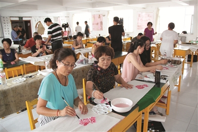 “瞧,这画画得多漂亮,培训太有指导意义了。”8月6日,在洮北区文化馆举办的2015′洮北区城乡群众书画爱好者培训班上,两位女书画爱好者在听完授课老师的讲座后,颇有感慨地在精心构画。