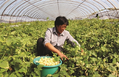 大安市太山镇巨宝村大力发展黄菇娘产业,全村大棚达597栋,实现收入600多万元。图为村民在采摘黄菇娘。