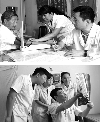 吉林省人民医院联合体通榆县红十字医院成立一个月来,吉林省人民医院专家来到联合体通榆县红十字医院门诊接待患者621人次,开展手术65例,为患者节省费用50多万元,受到患者的好评。上图为省人民医院专家为患者诊病。下图为省人民医院专家发挥“传帮带”作用,通过x光片为通榆红十字医院医生讲解病例。