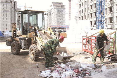 在白城新城家园棚改项目工程施工现场,施工单位设置了专人专车清理工地上的建筑垃圾,并且将这些垃圾送往指定地点集中处理,为项目建设创造了整洁环境。