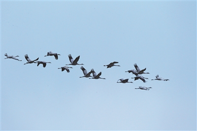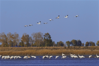 俄罗斯西伯利亚东北部是白鹤的繁殖地,它们要在那里生儿育女。当秋季来临,白鹤带着爱情的结晶,沿着固定的路线返回鄱阳湖越冬,莫莫格5000公顷的藨草湿地极大地满足了它们对食物的需求,这里也就成了白鹤迁徙途中的“五星级驿站”。