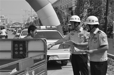督察部门向群众发放宣传单,号召社会各界对警务进行监督。
