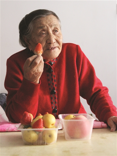 图①在白城市夕阳红老年养护服务中心居住的宋凤芹老人今年已85岁高龄,她对记者说:“我最在乎的就是老有所养。只要国家想着俺们老年人,为俺们出台政策,那俺们一定能老有所养、老有所依。”