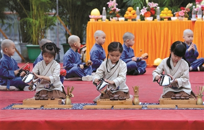 11月17日,小朋友在中国大红袍国际禅茶文化节上表演茶艺。
