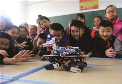 当日,安徽合肥市朝阳社区邀请中国科学技术大学机器人团队来到合肥市第六十七中学小学部,向孩子们展示舞狮机器人、机器狗等机器人,让孩子们近距离感受科技魅力。