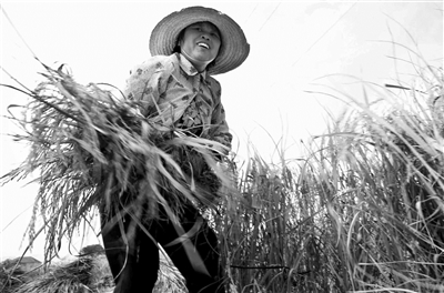 11月22日,江西省靖安县仁首镇石下村农民在抢收晚稻。
