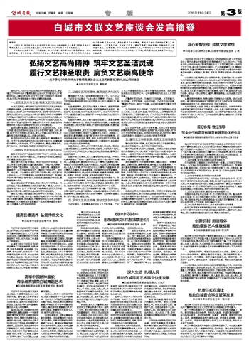 贯彻落实《意见》要求,用创新精神、创造智慧和创作实践落实好新时期文艺工作的根本任务。白城书协要始终坚持以人民为中心的创作导向,不断提高专业技能和创作品位;高扬社会主义核心价值观的旗帜,多出精品服务社会;坚持弘扬中华优秀传统文化,满足广大群众文化需求。书法工作者要处理好文艺与人民、社会效益与经济效益、继承与创新等关系,不辜负党和人民的期望。