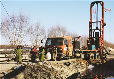 初冬时节,滴水成冰,位于大安境内的长白铁路208道口平改立工程项目施工人员仍坚守岗位,进行桩基作业。 姜伟明摄