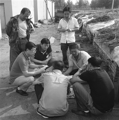 图②全县扶贫开发攻坚“三推进、三提升”动员大会召开后,镇赉县就业局迅速与包保村东屏镇乌木村对接并开展帮扶工作。图为该局领导考察东屏镇烤烟收获情况。 张武摄