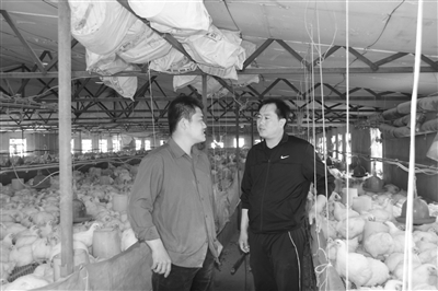图③大屯镇青年致富带头人、大学生创业典型许云鹤,2007年大学毕业后毅然选择回乡发展肉鸡养殖。如今肉鸡产量已达到5万只,年产值150万元,发展连锁经营带动10余个小型养殖场,使20多户百姓受益。 贺财摄