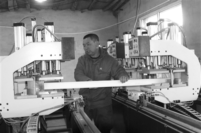 11月30日,镇赉县智升塑钢门窗有限公司工人利用断桥铝门窗加工设备对原材料进行加工。镇赉县智升塑钢门窗有限公司成立于2010年,近年来不断加大硬件投资,投资50多万元购进了10余套领先设备,大大提升了产品质量,使产品得到了客户的极大认可。与此同时,他们还安置了20多人在此就业。