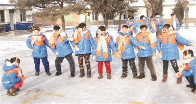 12月15日,洮北区东风中心小学的学生们穿着新衣服正在高兴玩耍。当天,由共青团白城市委、洮北区新立街道办事处、壹基金温暖包白城发放处联合开展的“壹家人温暖白城”帮扶活动在东风中心小学举行,他们为中心小学50名学生每人发放一个包括衣服、手套、围脖、学习用品等在内,价值300多元的壹基金温暖包,总价值1.5万余元,真正把温暖送到了学生们心中。 本报记者张殿文摄