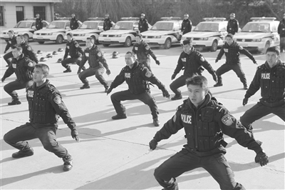 “都说当兵训练苦,其实特警训练也很苦,但苦过才有真功夫,上岗后底气会更足。”部队出身的特警队员金德营对此深有感触。特警支队的训练是根据公安部特警队建设规范实行军事化管理。体能、耐力、摔擒、擒敌、格斗、战术、实弹射击等训练是每个特警队员必过的“规定动作”。