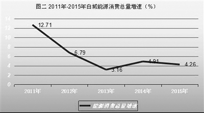1.能源消费增长逆势回落。“十二五”时期白城GDP年均增速达到11.1%。核算预计,2015年全市能源消费总量370.91万吨标准煤,“十二五”年均增长6.3%,能耗年均增速低于GDP增速4.8个百分点,单位GDP能耗约为0.55吨标准煤/万元。