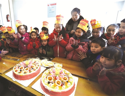 1月18日,爱心志愿者为振兴中心校的留守孩子们过集体生日。