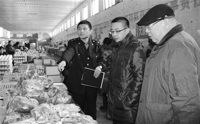 执法人员深入市场,检查节日市场。 杨久龙摄