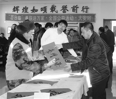 文艺工作者深入基层为群众送春联。 吕洪杰摄