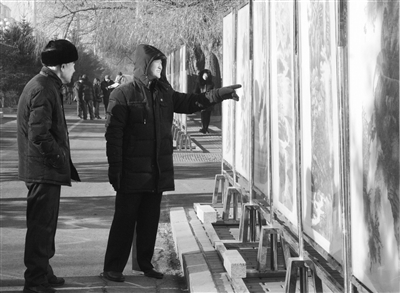市民在参观迎新春书画摄影作品展。 林英春摄