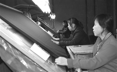 2月1日,洮南恒盛毛纺织有限公司职工在认真检查纺纱质量。洮南恒盛毛纺织有限公司以“求真务实、创新发展”为企业精神;以“健康、诚信、公平、共赢”为经营理念,不断提高产品质量,使企业连续七年荣获吉林省工商局“重合同、守信用”AAA级企业。“金珠”牌精纺呢绒系列产品2013年获“吉林省名牌产品”荣誉称号;“金珠”牌商标获得“吉林省著名商标”荣誉称号。 本报记者张殿文摄