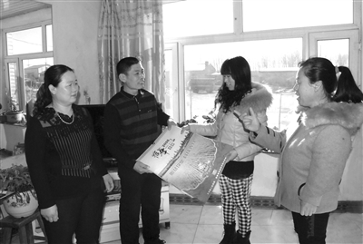 镇赉县大屯镇政府拓展扶贫攻坚思路,把科技惠农纳入重要的扶贫工作日程。春节期间,该镇制作了精美的水稻新技术推广挂历,镇、村干部把挂历送到水稻种植户手里,受到了农民的欢迎。大屯镇水稻种植大户袁士彬接到挂历说:“谢谢镇政府,给我们送来了好看又实用的宝贝。” 潘晟昱 冯振龙摄