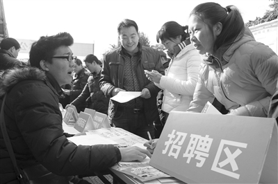 2月16日,求职者在湖北省十堰市郧阳区2016年“春风行动”大型招聘会上咨询。春节过后,多地举行专为进城农民工提供就业服务的“春风行动”求职招聘活动,帮助返乡农民工在家门口就业。 新华社发曹忠宏摄