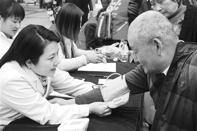 3月4日,志愿者在浙江省建德市学雷锋活动中为市民进行义诊。