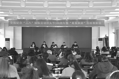 ——开展纪念“三八”国际劳动妇女节系列活动。2016年3月8日,在第106个“三八”国际劳动妇女节期间,该县妇联开展了系列活动,与各界妇女共庆节日。在一中体育馆,组织全县各界妇女群众200余人开展“重家庭、扬美德,重家教、做表率,重家风、弘大义”为主题的最美家庭主题签名活动,推动了最美家庭活动的深入开展。通过签名活动,引导广大妇女从自身做起,从家庭做起,积极参与创建最美家庭,展示“最美”,分享“最美”,争做“最美”,发挥家庭在社会进步中的推动作用,以好的家风支撑起好的社会风气。他们还深入农村开展了“妇女之家”文化扶贫活动,丰富农村妇女群众文化生活,助力脱贫攻坚,该县妇联向省妇联争取了总价值近6万元的文化惠民项目,为每个乡镇妇女之家配备一套价值5000余元的文化设施,用于武装妇女活动阵地,开展健身文体活动。巾帼爱心志愿者们还在“三八”妇女节带着书包、台灯、文具等用品到学校为留守儿童带去一份贴心的礼物,送去了社会的关怀和温暖。巾帼法律志愿者走近基层维权调解员队伍,对他们进行维权专业技能培训,并通过实际案例深入浅出地讲解了妇女遭受到家暴、性侵、离婚财产纠纷等问题的处理方法,同时,还对参训人员提出的法律问题进行一一解答,受到参训人员的好评,丰富多彩的活动营造了浓厚的节日氛围。