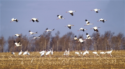 天气转暖,候鸟陆续归来。3月23日,镇赉县建平乡金边湖湿地发现近百只国家一级保护动物白鹤,该种群是2016年首批到镇赉停歇的白鹤。另外,该湿地目前还有大雁上千只、国家二级保护动物灰鹤200多只。根据候鸟迁徙规律,近日将有大批候鸟到达该县。