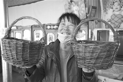 镇赉县东屏镇格力村人均土地4.8亩,人均收入不足3000元,是典型的贫困村,该镇党委为帮助村民脱贫,组织村里富余劳动力学习柳编技术,并协助村民成立柳编专业合作社,与县城的柳编企业合作,产品可出口到欧美等地。图为格力村村民高兴地展示自己的柳编作品。