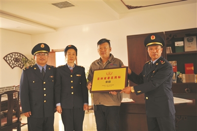 近日,白城市工商局管理人员把省著名商标证书和牌匾送到吉林省著名商标企业白城市索田涂料负责人手中。近年来,市工商局高度重视商标品牌战略建设,积极宣传商标法律、法规知识,全面加强商标监管、服务工作,促进了我市商标品牌战略深入发展。