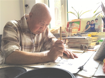 采访中,王国华的老伴儿刘凤告诉记者:“我家这‘老同志’啊,起初只是天天练字,没想到竟然越练越精,特别爱研究篆书,经常一写就是几个小时。”面对老伴儿的评价,坐在一旁的王国华只是笑笑。老人告诉记者,他有两个儿子一个女儿,大儿子和小儿子一个远在加拿大定居,一个在首都北京,只有女儿在白城工作,虽然平时不常看见两个儿子,但每天都通电话,儿子并没有让老人和他们产生距离感。