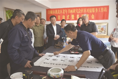 本报讯(记者薄秀芳)为全面推进文化志愿服务,扎实开展文化惠民工作,近日,洮北区老年书画研究会在洮北区长庆街道新居社区举行了社区对接服务工作站启动式暨书画笔会。
