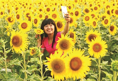 眼下,河北省饶阳县留楚乡金黄的油葵花竞相开放,如画的美景吸引众多游客前来观赏。近年来,饶阳县在进行农业结构调整的过程中,引导当地农民种植油葵。目前全县油葵种植面积达1.2万亩,既为种植户带来经济收益,也成为乡村旅游新亮点。 新华社记者朱旭东摄