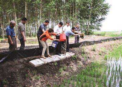 镇赉县积极发展稻田养鱼、养蟹,促进农业、渔业供给侧结构调整和稻田综合种养增收工程的实施。据了解,每公顷稻田养鱼蟹,仅此一项就可创造效益9000元。水稻产量还可提高7%,稻米品质能得到有效改善,大米附加值会大幅提升。近年来鱼蟹稻田的米价为每公斤60元左右,供不应求。图为镇赉大屯英台农机农民专业合作社在稻田里投放蟹苗。 潘晟昱摄