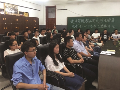 离开火热的警营、军营,走进青涩的校园,在白城师范学院文科综合教学楼多媒体教室内,美术学院全体教工党员和学生党员齐聚一堂,一同通过网络直播观看大会盛况。“能够以党员的身份观看直播,我特别激动。同时,更加坚定了我永远跟党走,好好学习,报效祖国的信心和决心。”今年刚刚入党的大学生关心的一番话说出了莘莘学子的共同心声。