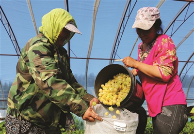 脱贫攻坚工作开展以来,大安市按照精准施策百分之百、抓资金项目入户全覆盖的要求,加快工作节奏,推动项目全面落地,成果显著,资金项目覆盖率为80%以上。图为月亮泡镇黄菇娘喜获丰收,农民增收已成定局。 姜伟明摄