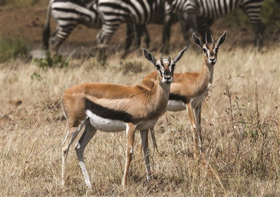 7月23日,在肯尼亚马赛马拉国家保护区,一对瞪羚在草原上活动。