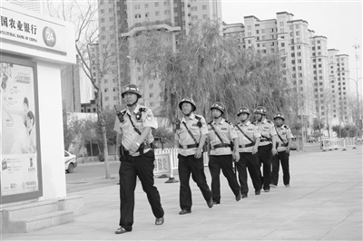 每日早、中、晚高峰期提前介入市区7所学校门前及早市、菜市场进行疏导交通。重要会议期间,与会宾馆门前安排专职警力全力保障。