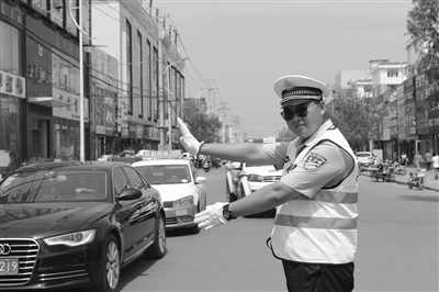 入夏以来,城区持续高温、暴雨,但民警仍在每个路口坚守,他们镇定指挥不离岗位,始终用标准的手势、响亮的话语、清脆的哨声指挥着车辆和行人,使交通井然有序。