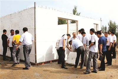 通榆县大力推进危房改造工作,现已开工建设66户,竣工3户,入住3户。图为前不久这个县在兴隆山镇召开危房改造现场推进会,推广危房改造经验。 赵玉花摄
