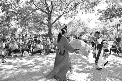 8月15日,洮北区文联组织二人转歌舞演唱协会到市民广场开展群众喜闻乐见的二人转表演活动,努力做到文化亲民、文化为民、文化乐民,为传承二人转艺术、建设“二人转名城”增光添彩。 王绍利摄