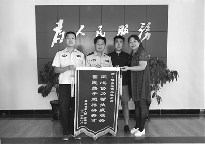 13年前,镇赉县公安局城北派出所社区民警高崇山在辖区入户走访时,好心群众向他反映:一个十来岁的小男孩崔某因为失去父母,吃百家饭,穿百家衣,没有钱上学。高崇山将情况向所领导进行了汇报,所领导与相关部门取得联系,争取社会力量援助,男孩被安排在福寿祥老人院。每逢年节,民警们都要看望崔某。转眼间,十几年过去了,当年的流浪儿长成了大小伙子,今年考上了山西晋中学院。8月26日,崔某和老人院院长手捧一面大红锦旗来到城北派出所,感谢多年来警察叔叔的帮助。 成治国摄