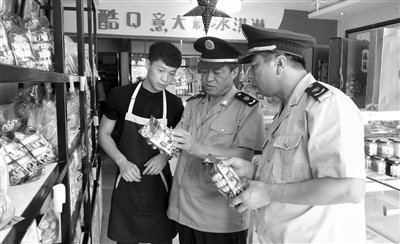 中秋节来临之际,洮南市市场监督管理局光明管理所加大月饼市场监管力度,组织执法人员深入辖区食品商场、超市、食杂店和月饼生产加工企业,严查月饼食品的标签标识、生产日期、保质期、配料表及索证索票等情况,严防掺杂使假、以次充好、过期变质、过度包装等不符合国家规定,存在质量问题的月饼上市销售,确保市民安全消费、放心购买。图为该所执法人员正在糕点专营店检查月饼质量。