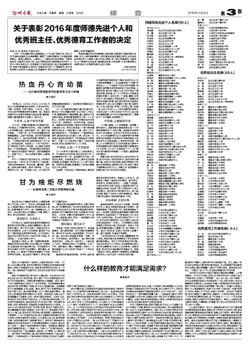 关于表彰2016年度师德先进个人和