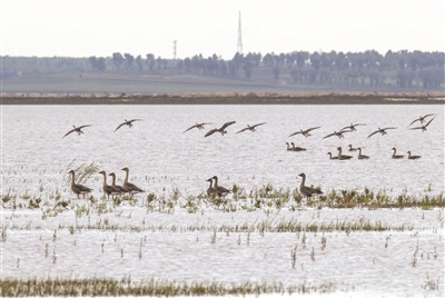 据了解,中秋节前首批白鹤就来到了镇赉,较往年提前了10天左右,这是一个喜人的生态现象。近年来,镇赉实施了河湖连通工程,采取退耕还湿、加强管护等保护、恢复湿地的措施,生态环境得到了极大的改善。白鹤既是湿地的旗舰物种,也是湿地的指示物种,其停歇时间延长和停歇数量增多都可证明湿地环境得到改善。