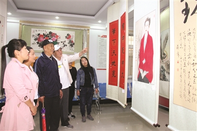为迎接国庆,纪念长征胜利80周年,不久前,镇赉县社区党工委、县老年书画研究会在该县民康社区和庆余社区举办了以“弘扬爱国主义精神、共筑中国梦”为主题的“光辉历程”书画展览,展览征集了该县书画爱好者的400余幅作品,活动当天就吸引了社会各界400多人前来参观。 潘晟昱摄