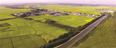 自脱贫攻坚战打响以来,洮北区因地制宜,因户施策,采取不同模式,全力打好打赢脱贫攻坚战。洮北区洮河镇大六家子村实施土地流转,将分散在农户手中的零散土地集合起来统一规划布局,集约化管理。同时将旱田改为水田,增加土地收益率。今年,大六家子村325户村民全部参加了土地集约,集约后的690公顷耕地,每公顷土地的收益将由4000至5000元增长到1.6万元至1.7万元,推动贫困户早日脱贫。图为大六家子村的集约化水田。 本报记者李晓明摄
