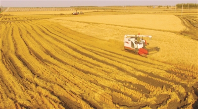 10月12日,洮北区洮河镇农民正在收割水稻。金秋十月,稻谷飘香,我市各个乡镇田间地头一片忙碌景象,农民们忙着掰玉米、收水稻……每个人脸上都洋溢着幸福的笑容。本报记者李晓明摄