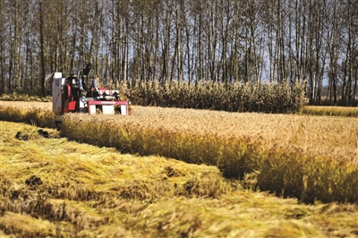 10月11日,农民在长春乐山镇驾驶收割机收水稻。 国庆长假刚过,吉林各地一派繁忙的秋收景象。 新华社记者张楠摄