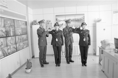 省监狱管理局镇赉分局五监狱为深入开展规范化建设,常态化开展了单兵单岗分列指导和集中强化训练。图为聘请武警教官单兵纠正敬礼动作。 武成林摄
